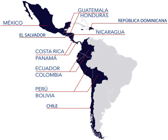 Bolivia, Chile, Colombia, Ecuador y Perú.